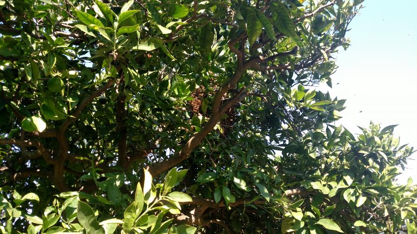 Bees, established colony in Orange Tree (July 2020)