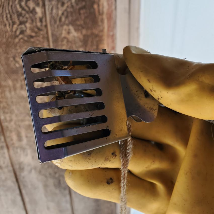 Bees, in garage panel (May 2023)